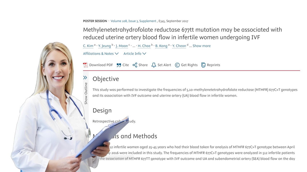 ເອກະສານອ້າງອີງ: Moon, S. Y. (2021). ຜົນກະທົບຂອງ 5-methyltetrahipedrophololate ໃນຄົນເຈັບທີ່ເປັນຫມັນ ດ້ວຍ methylenetraholyRiholate ຫຼຸດລົງ (MTHFR) 677TS MUTIUTAG LARGOING IVF. ການຈະເລີນພັນແລະການເປັນຫມັນ.https://doi.org/10.1016/J.Fertntterert.202.07.611.611